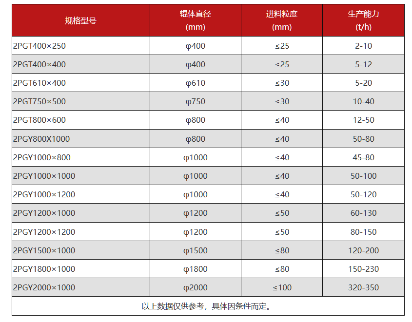 1、250×250,400×250,400×400,610×400,時產(chǎn)2-12噸左右,屬于小型對輥破碎機。
